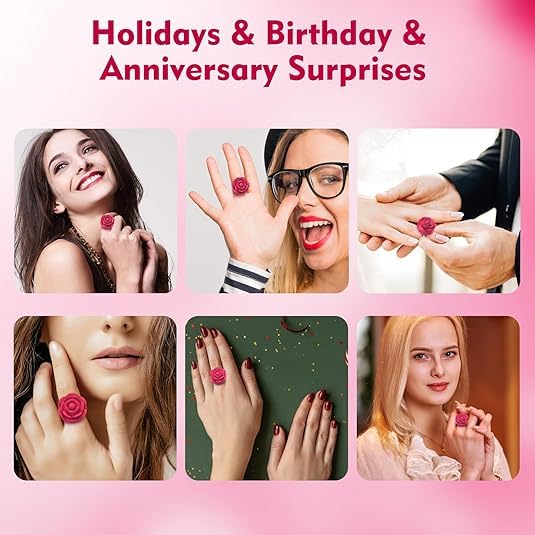 Tá dearadh fáinne oscailte stílithe ag an bhfáinne róise beag seo, ag ceadú oiriúnacht inchoigeartaithe agus chompordach do chuid is mó de mhéideanna méar. Cuireann a mhionsonra róise mín le teagmháil galánta agus draíochta, ag déanamh de ní hamháin gléas pléisiúir ach freisin gabhálais álainn.